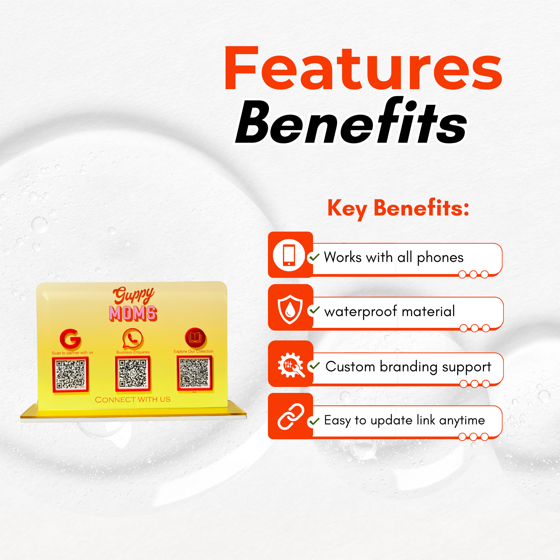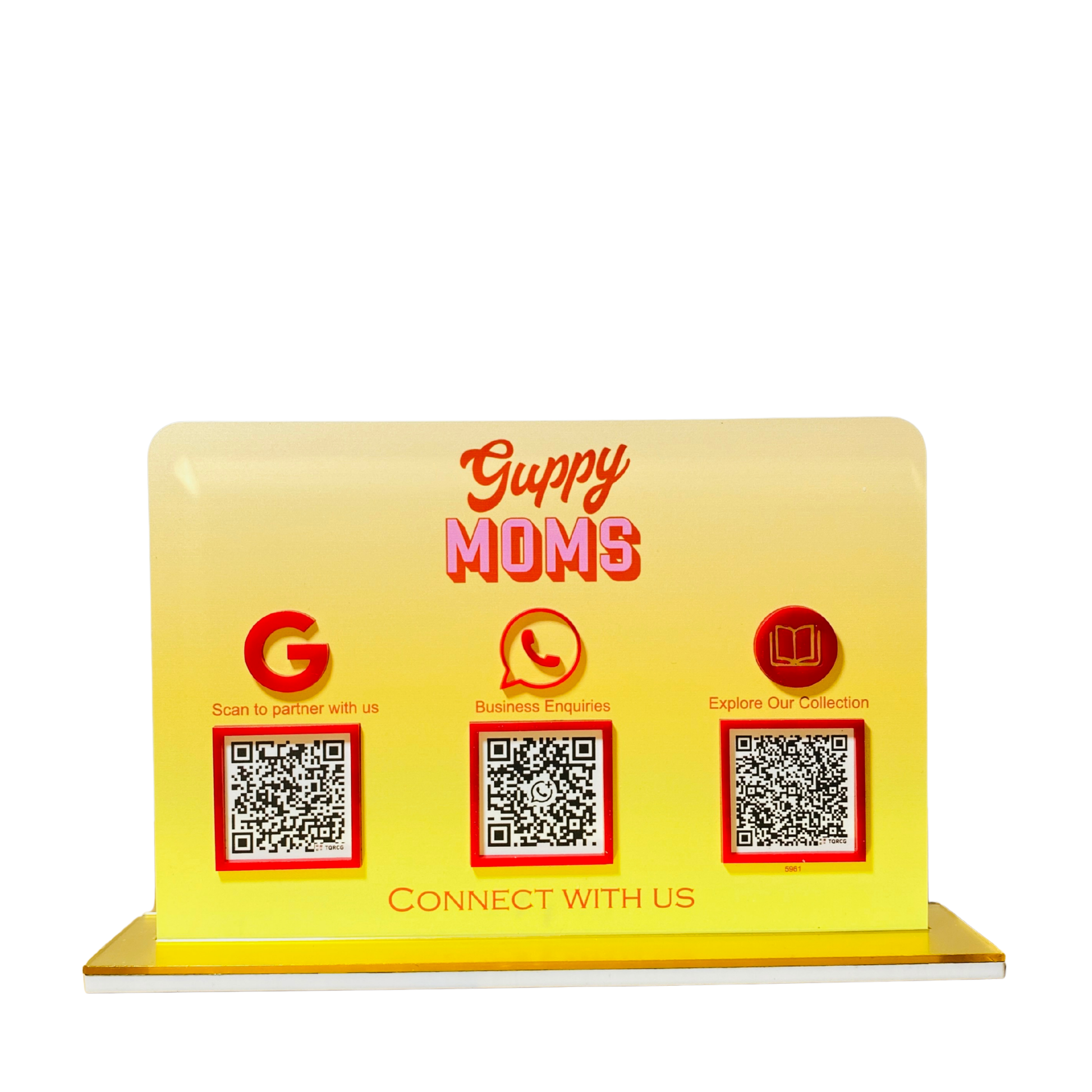 – This compact, adjustable Quick Response acrylic stand is made of high-quality gold and white acrylic sheet and has a striking design that allows it to be put anywhere. A quick scan of this QR code stand will take your customers to your page in an instant.